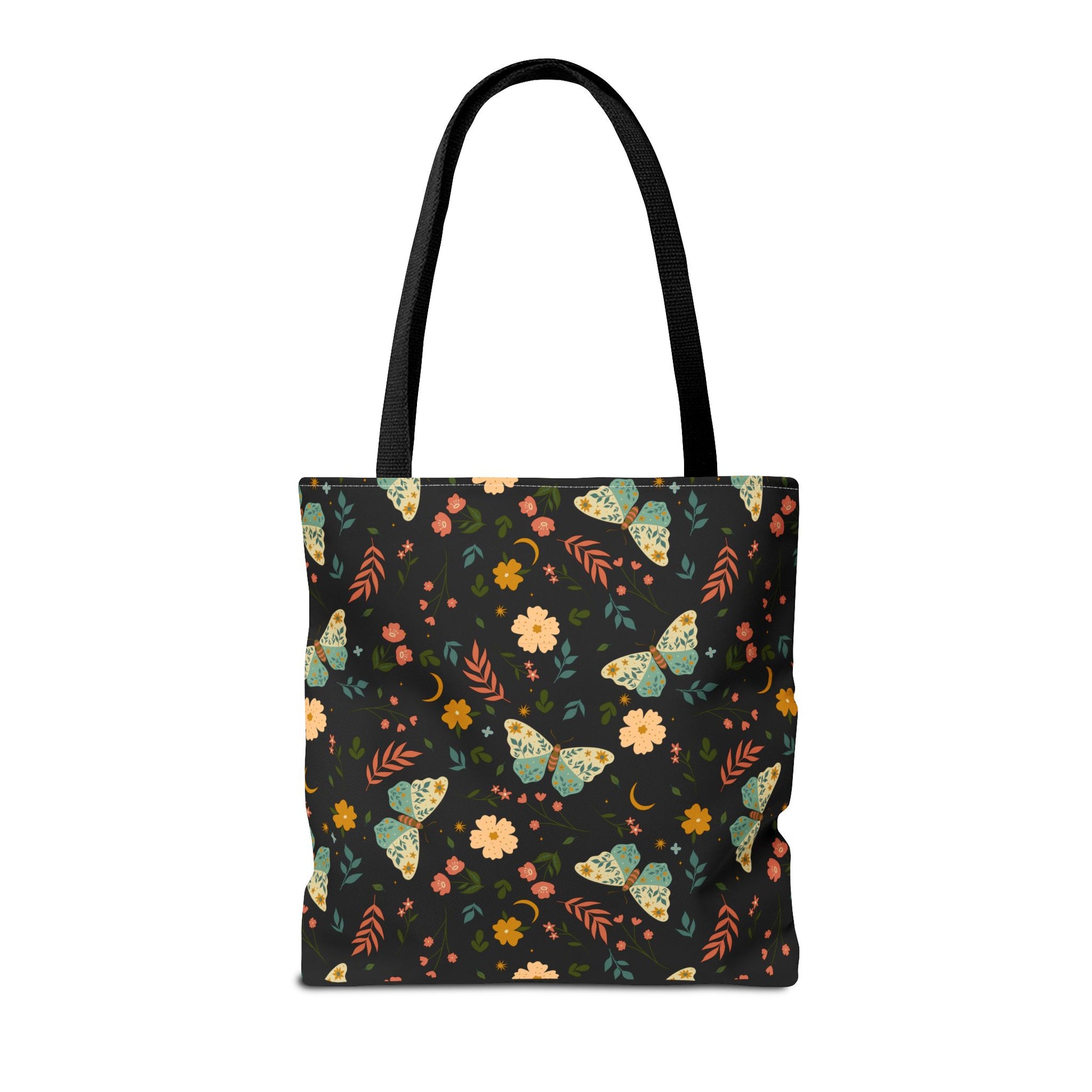 A roomy, durable tote that carries a quiet, botanical charm. The deep black background makes hand-drawn florals and leafy motifs pop along the lower edge, so the bag reads as both minimal and artful. Lightweight yet sturdy polyester holds shape and dries quickly, while boxed corners give the interior useful volume for books, groceries, or a sketchbook and supplies. Cotton handles with reinforced stitching sit comfortably on the shoulder. This tote moves easily from farmer’s markets to studio commutes, adding a subtle floral accent without shouting for attention.